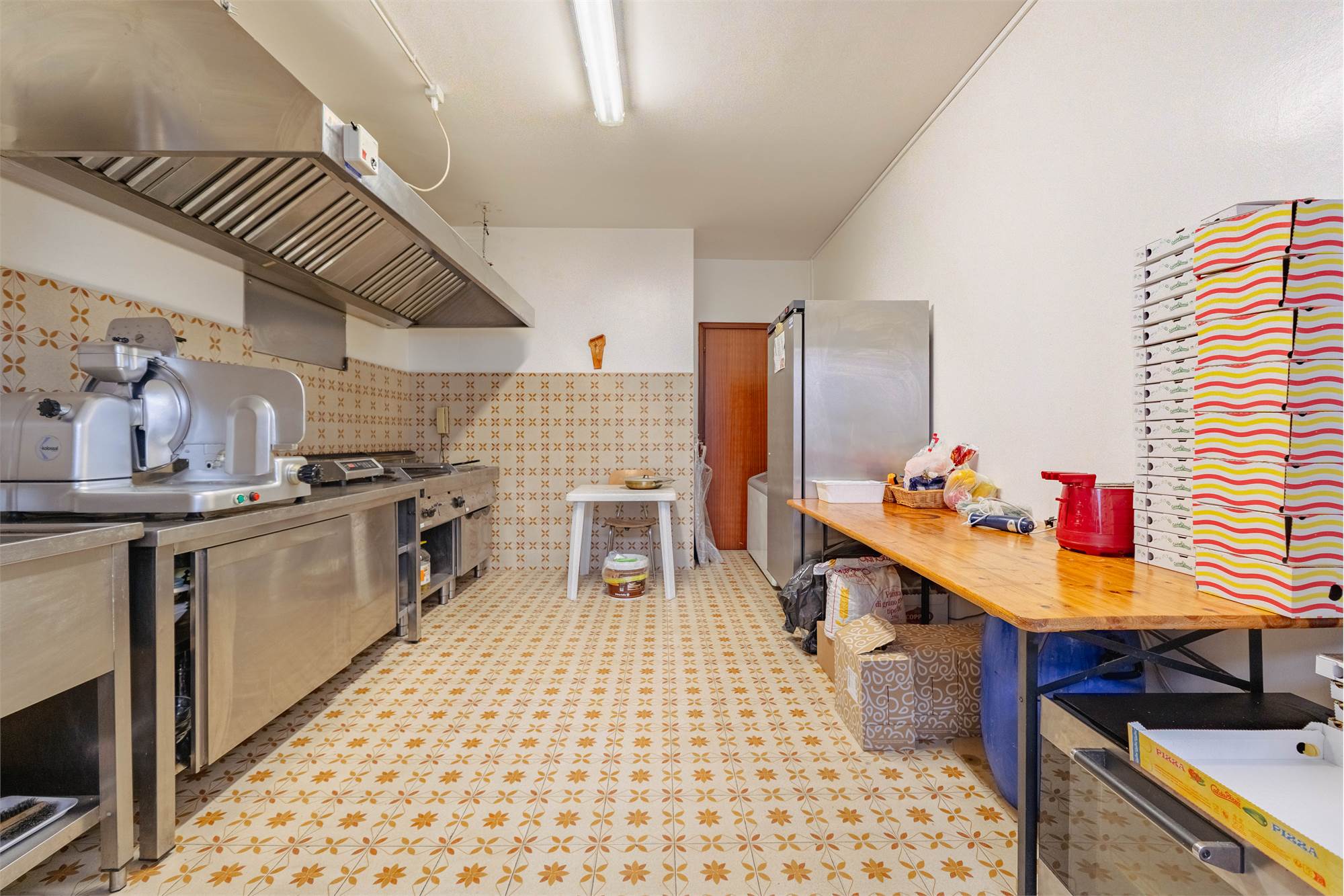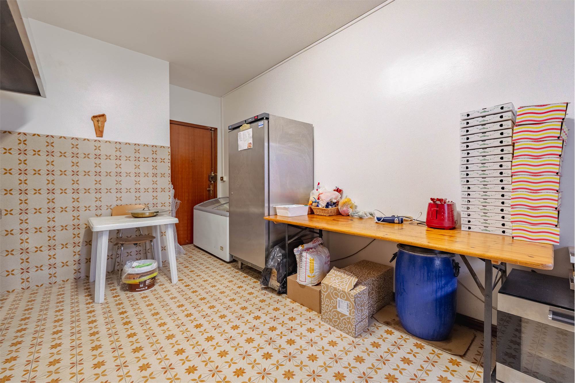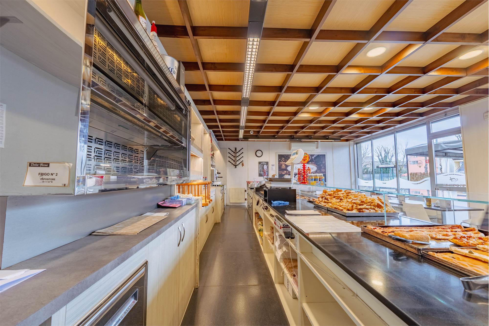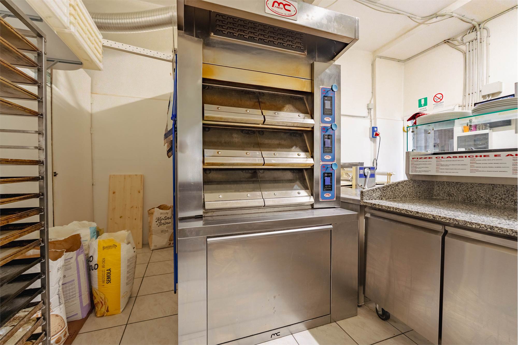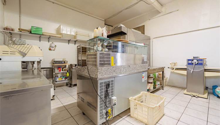 Il locale si sviluppa con un’area dedicata alla vendita e alla somministrazione con tavolini interni, oltre a uno spazio esterno attrezzato con dehors che consente di ampliare i posti a sedere. Nella parte retrostante è presente la cucina/laboratorio funzionale alla produzione, completata da due servizi igienici. Al piano seminterrato si trova un ampio magazzino di circa 100 mq, ideale per lo stoccaggio delle merci e l’organizzazione dell’attività.