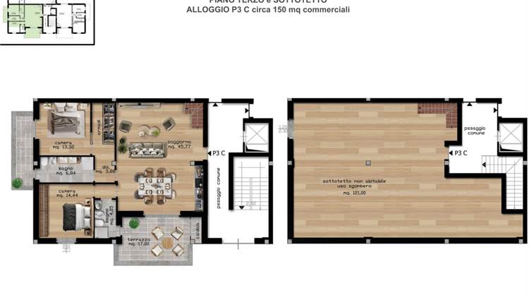 PT A 110 MQ € 285.000 PT B 120 MQ € 290.000 PT C 112 MQ € 280.000 P1 A 109 MQ € 269.000 P1 B 109 MQ € 269.000 P1 C 113 MQ € 278.000 P2 A 109 MQ € 269.000 P2 B 109 MQ € 269.000 P2 C 113 MQ € 280.000 P3 A 126 MQ € 360.000 P3 B 130 MQ € 365.000 P3 C 150 MQ € 375.000