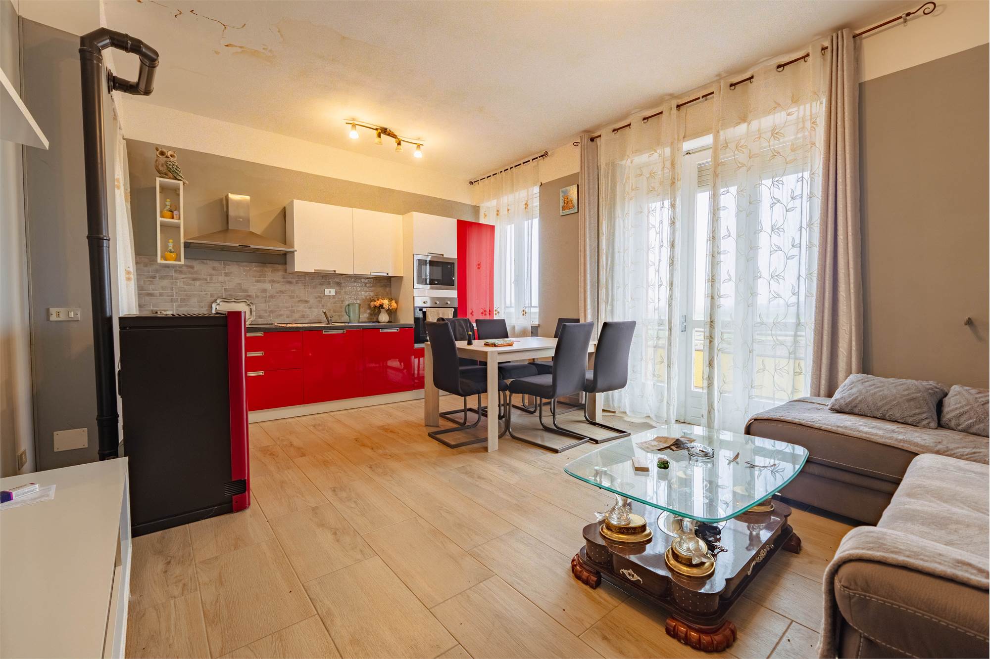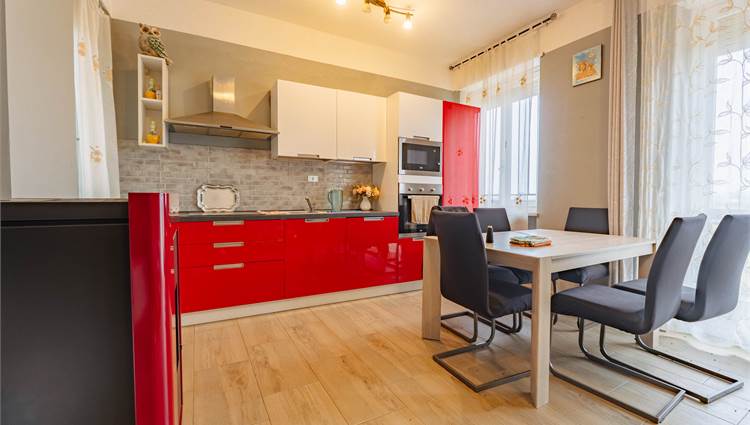 Al primo piano si trova la parte abitativa principale, composta da una luminosa zona giorno con angolo cottura, tre camere da letto ben distribuite e un bagno. Gli ambienti sono ariosi e valorizzati da tre balconi e da un terrazzo che garantiscono sfoghi esterni vivibili e ottima esposizione.