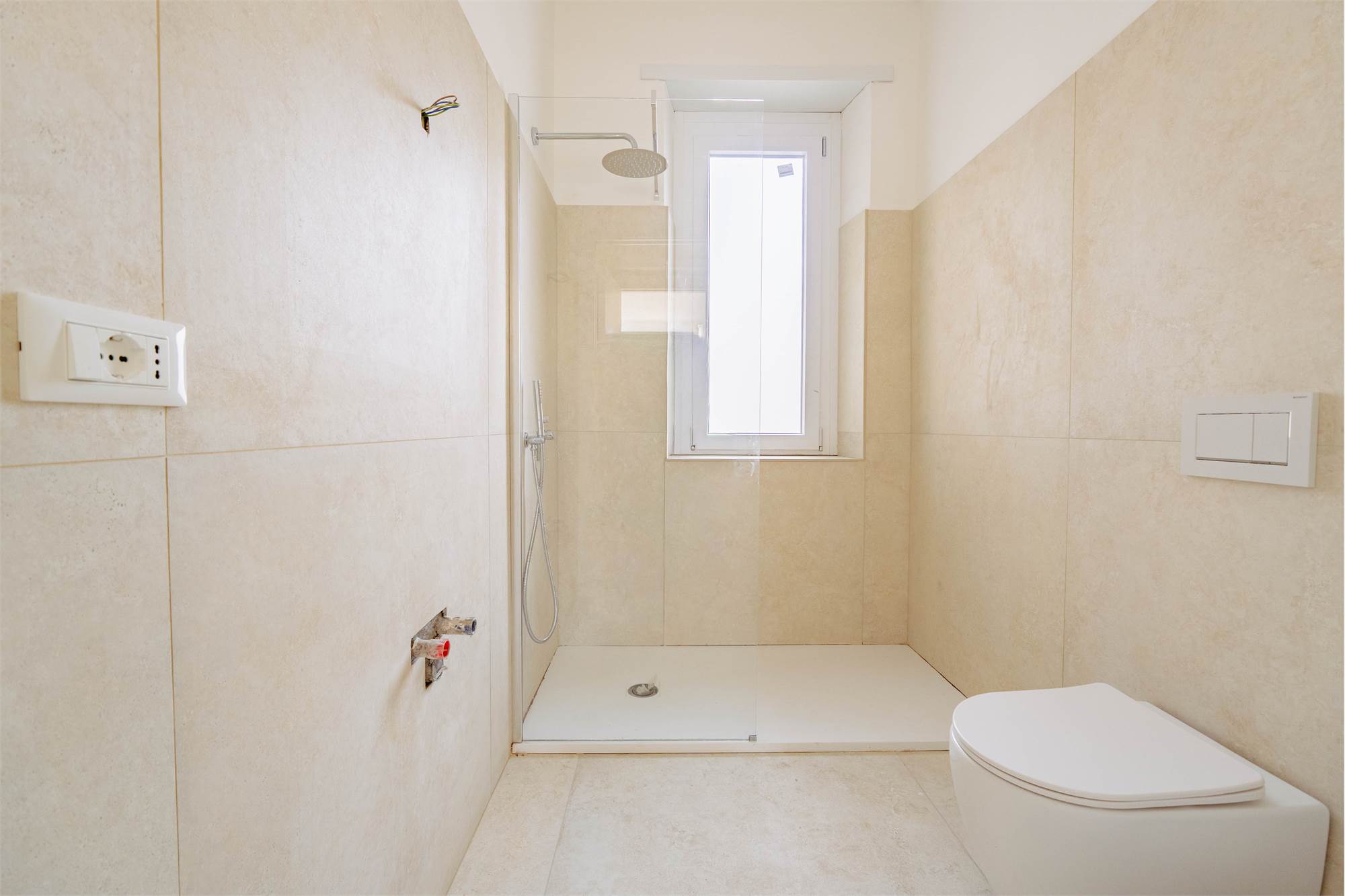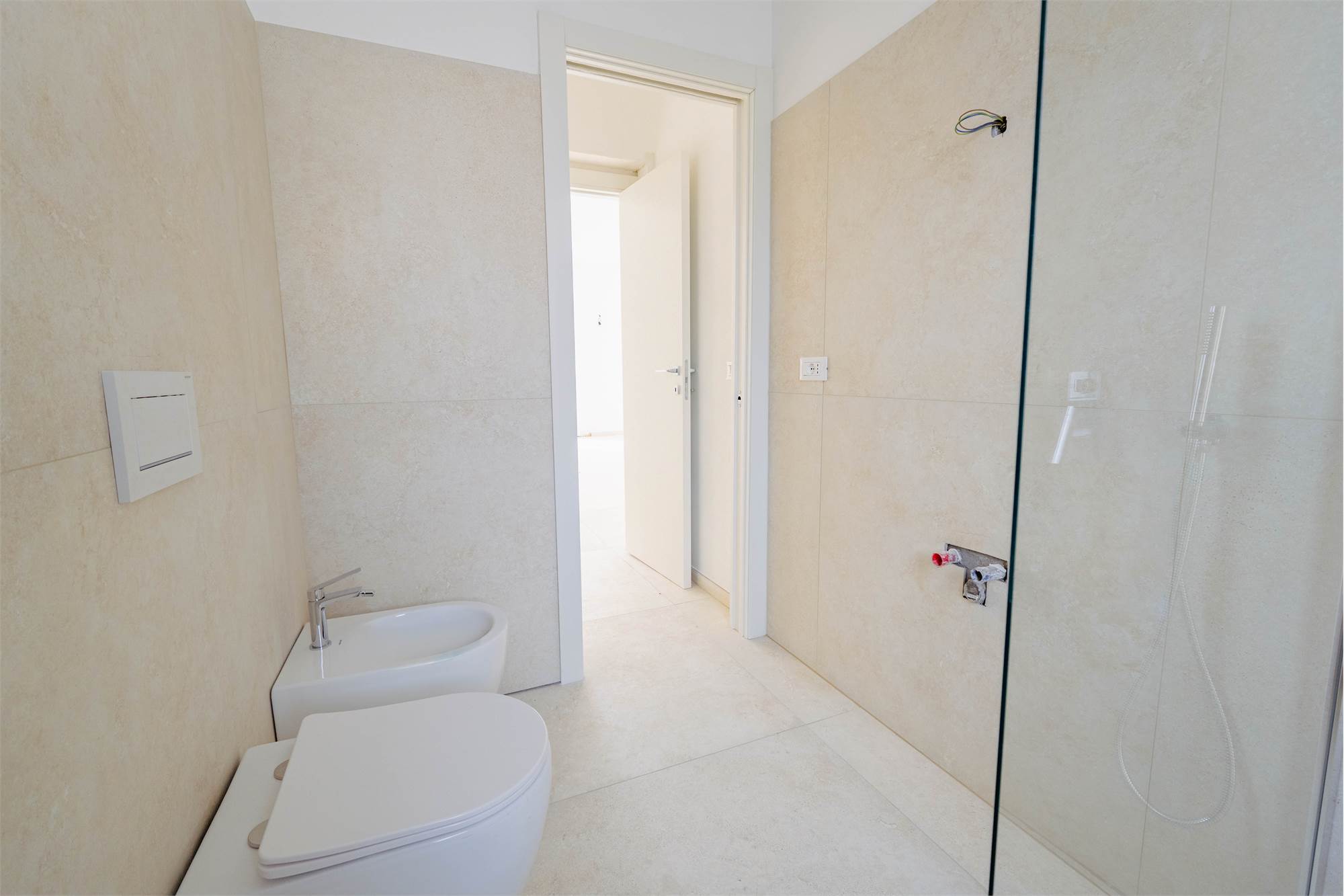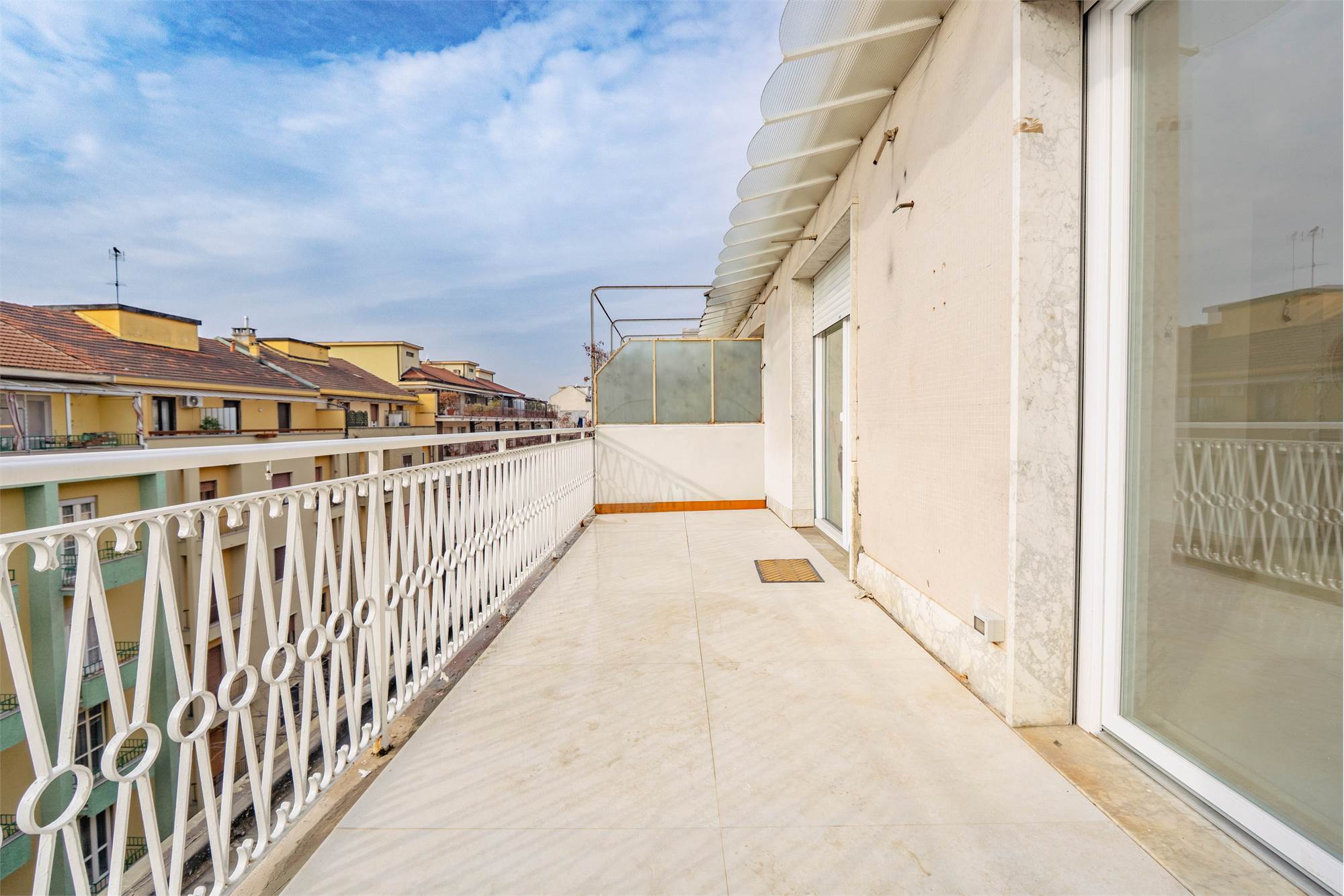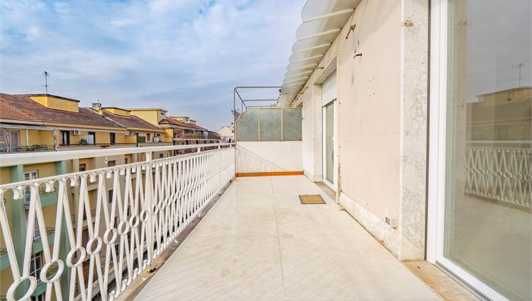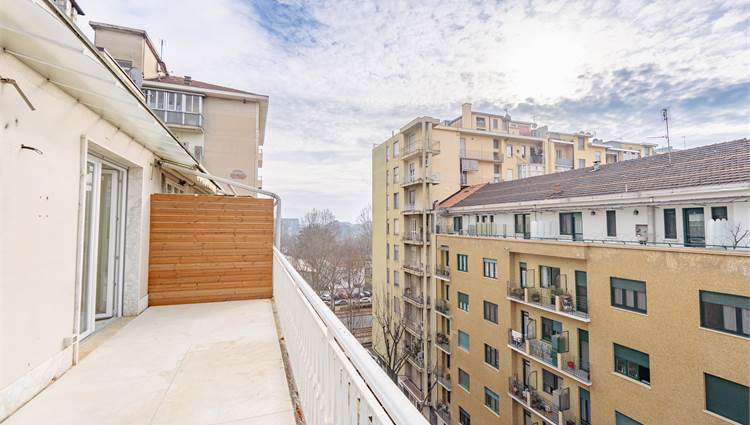 La zona notte è composta da una camera matrimoniale dotata di cabina armadio, mentre il bagno, finestrato, è rifinito con cura e completo di doccia. Gli spazi esterni valorizzano ulteriormente l’immobile: un balcone e un terrazzo di circa 14 mq offrono un piacevole sfogo all’aperto con vista e ottima esposizione.