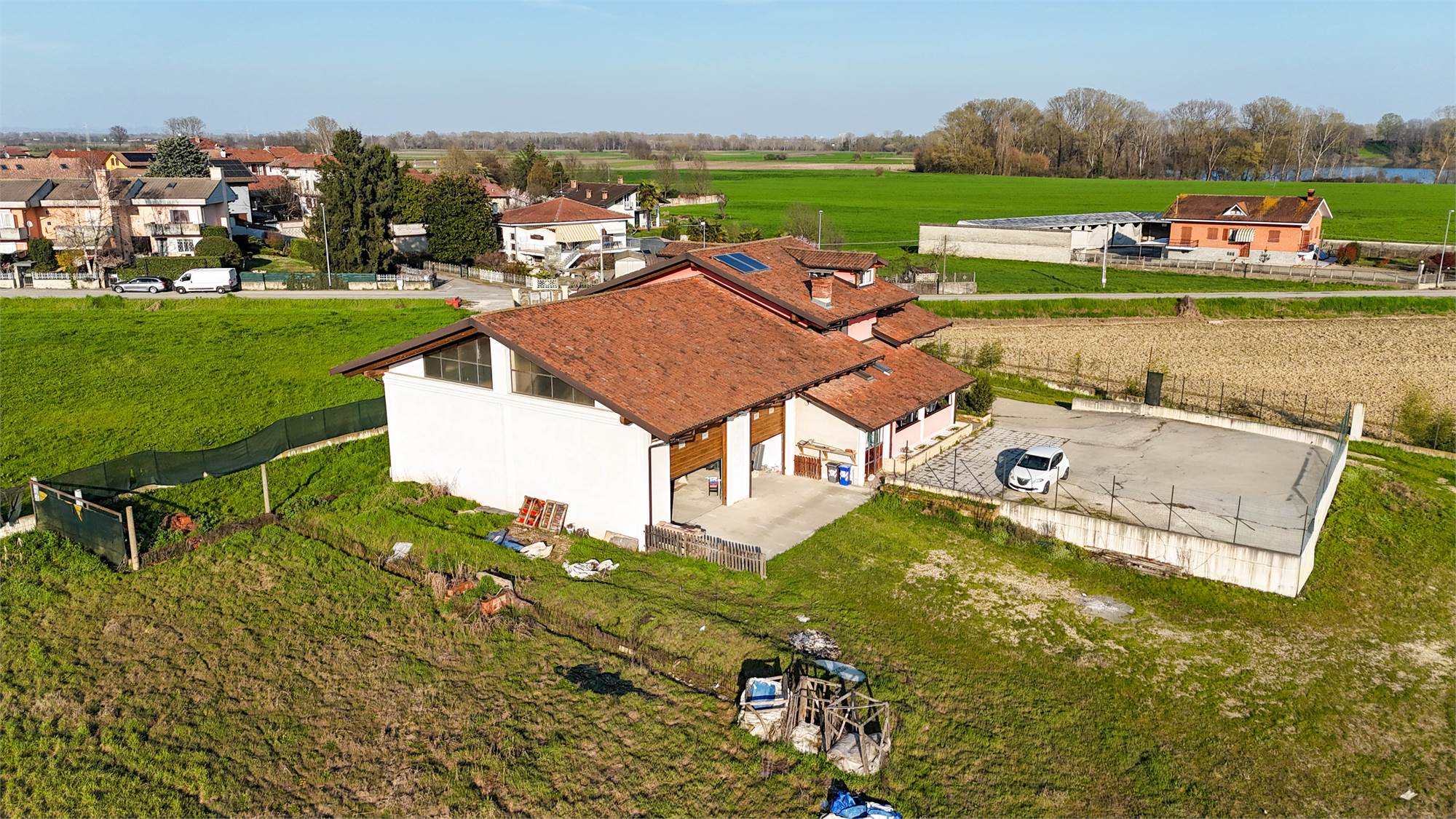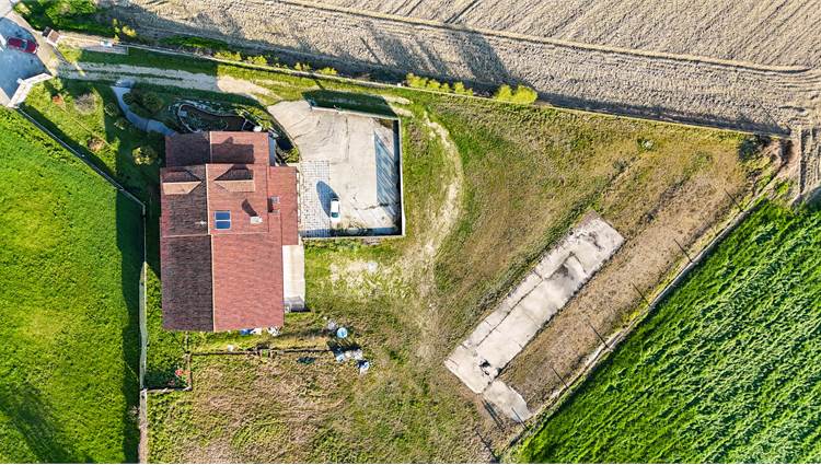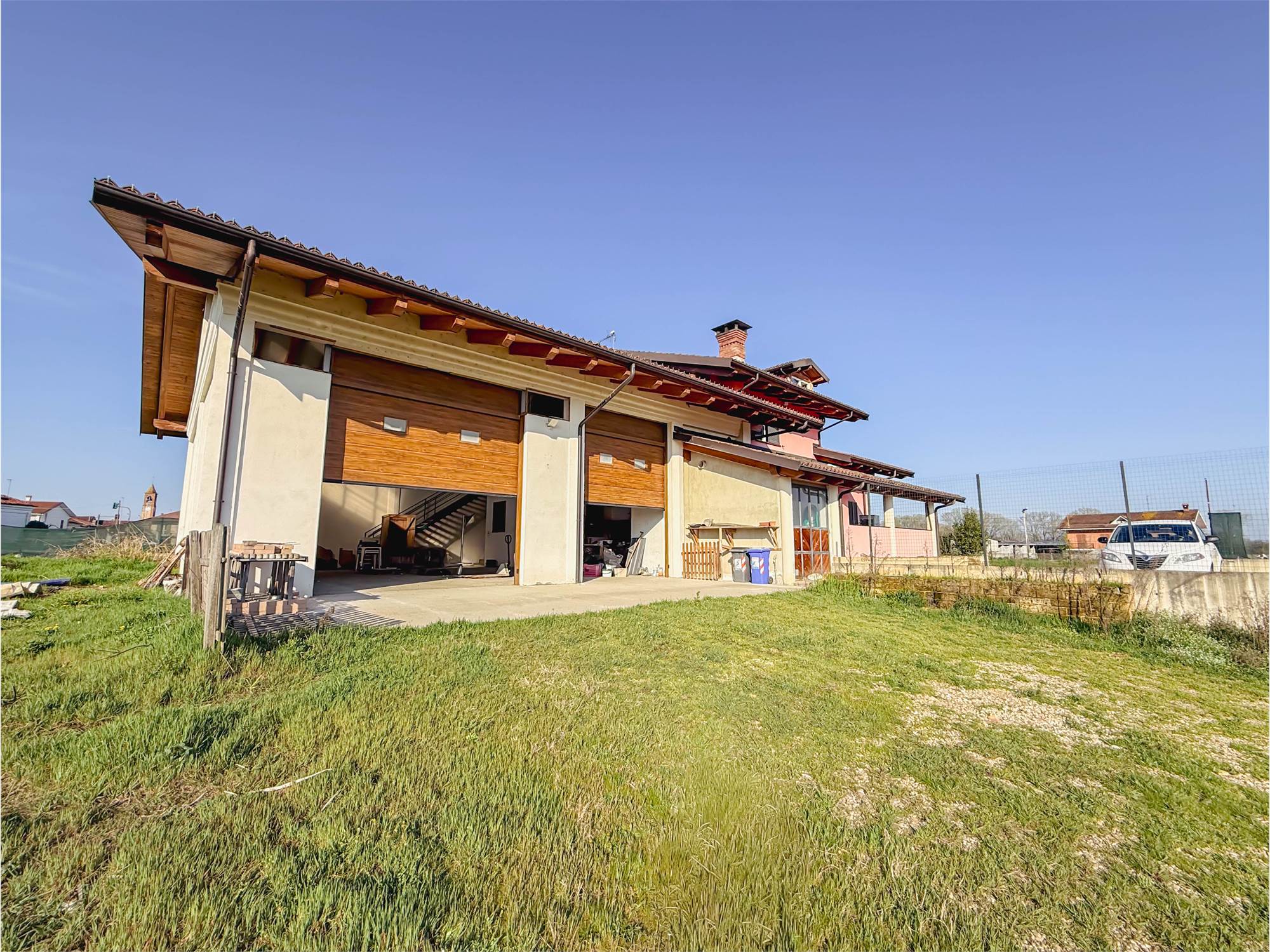 All’esterno, la proprietà è circondata da un ampio terreno privato di circa 4.400 mq, ideale per chi cerca privacy, spazio e libertà. Completano la soluzione il cortile, un capannone sfruttabile come autorimessa o ricovero mezzi e un locale caldaia.