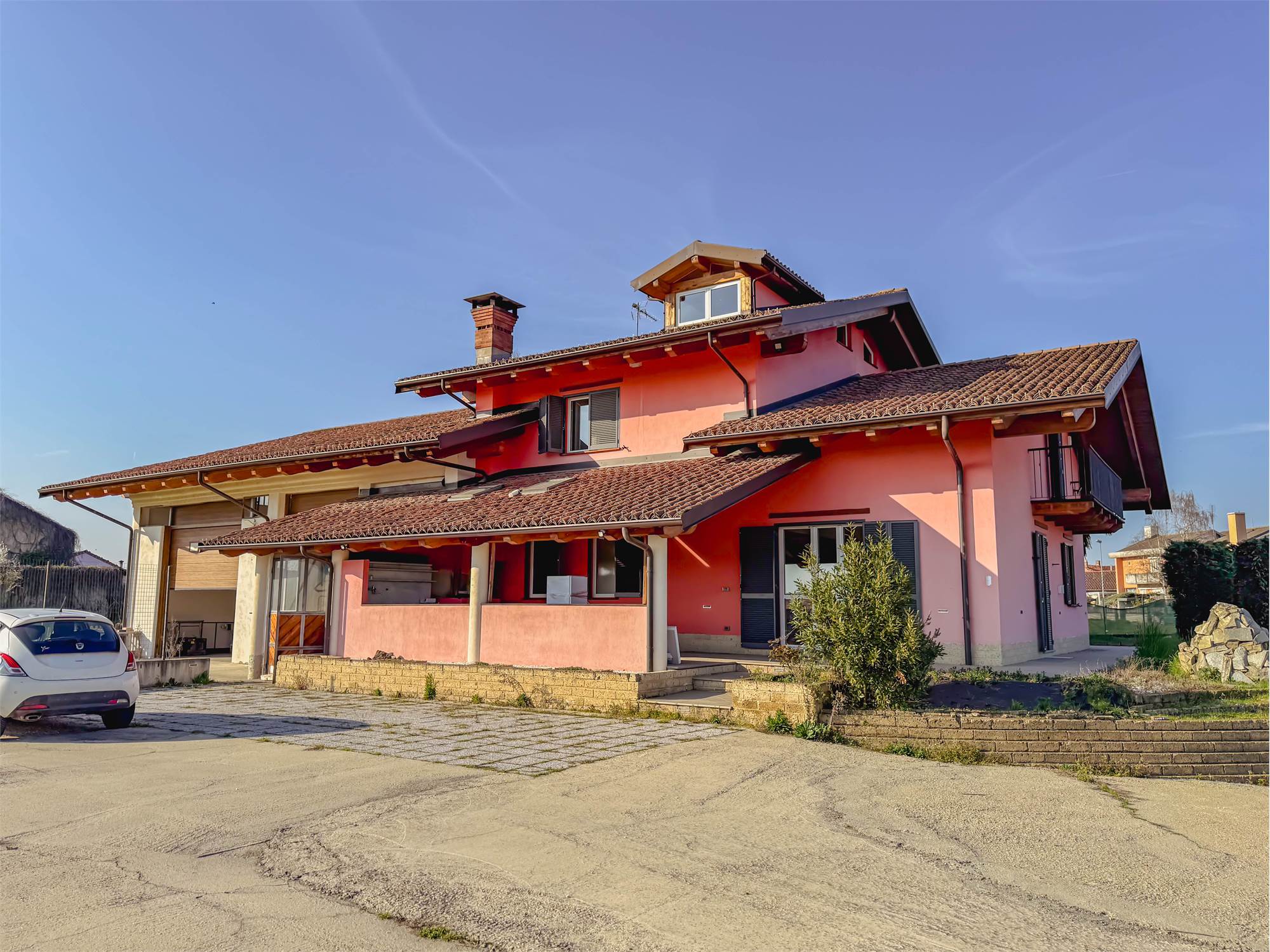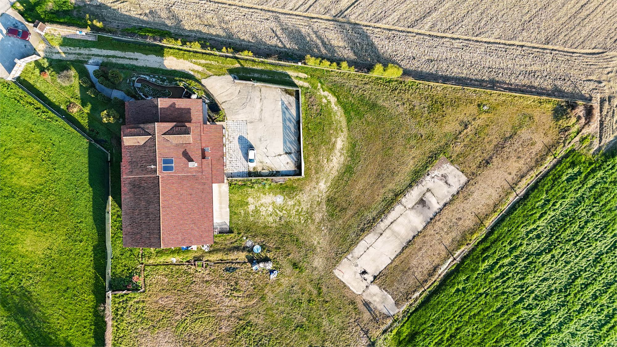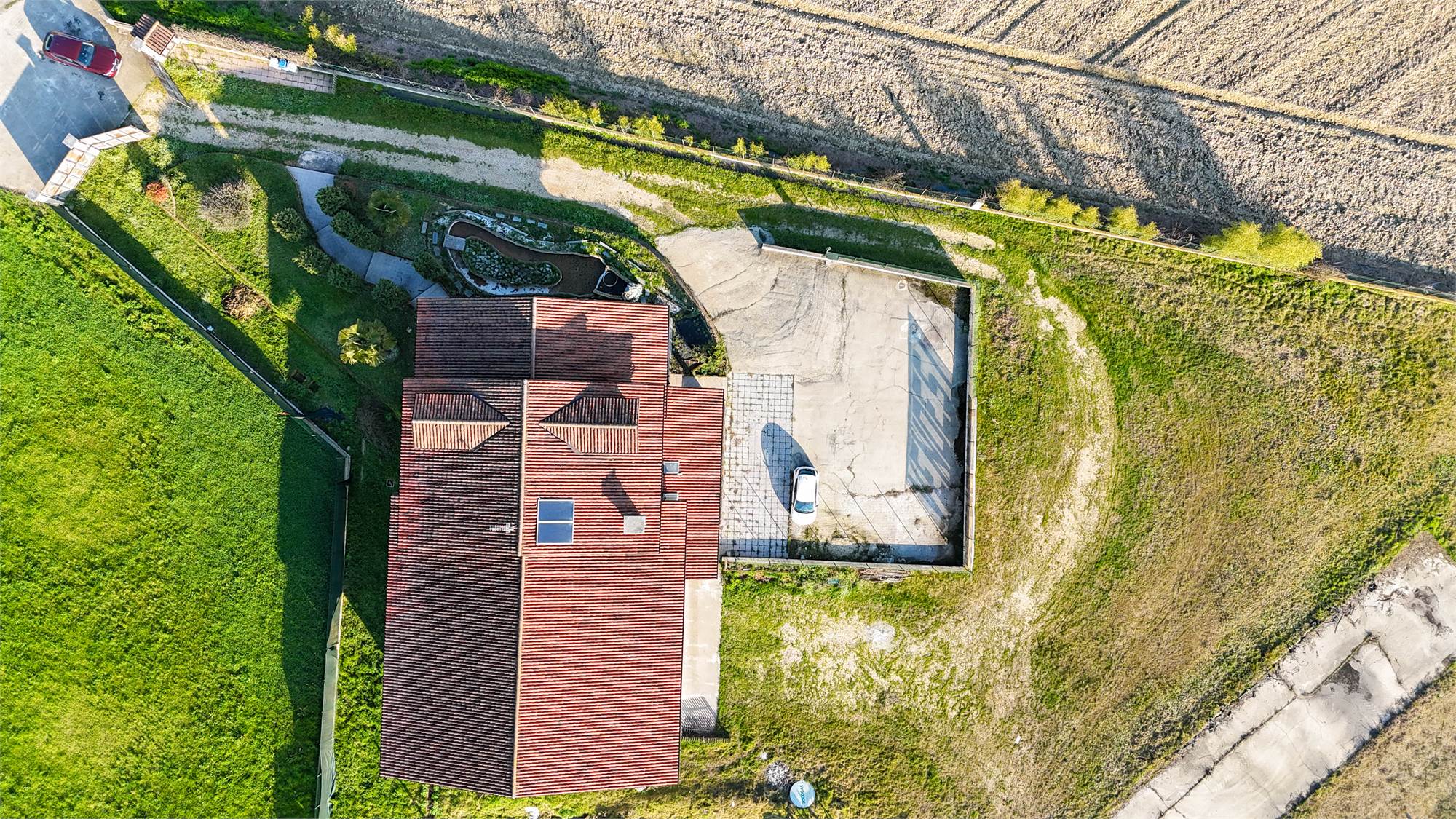 All’esterno, la proprietà è circondata da un ampio terreno privato di circa 4.400 mq, ideale per chi cerca privacy, spazio e libertà. Completano la soluzione il cortile, un capannone sfruttabile come autorimessa o ricovero mezzi e un locale caldaia.