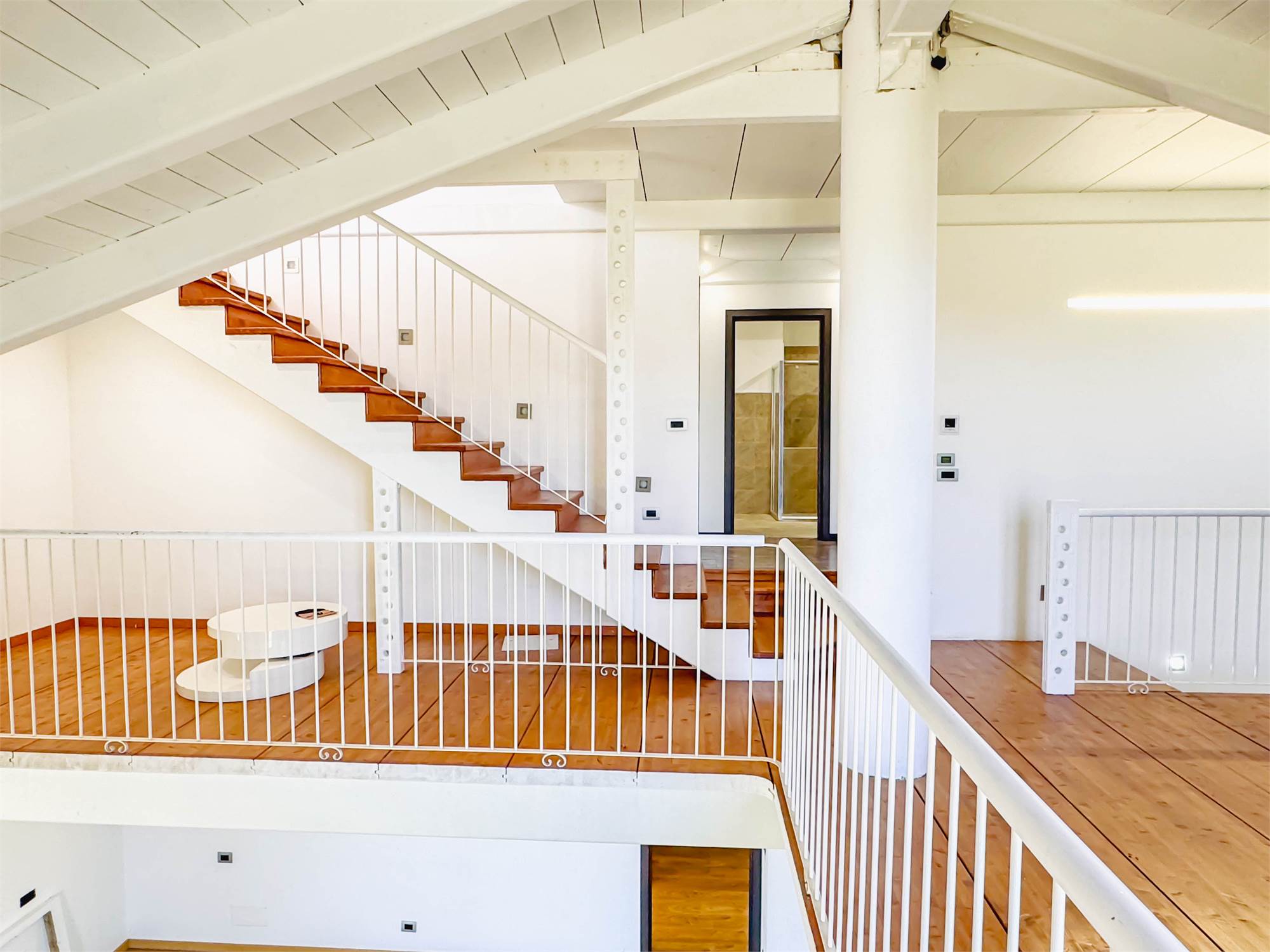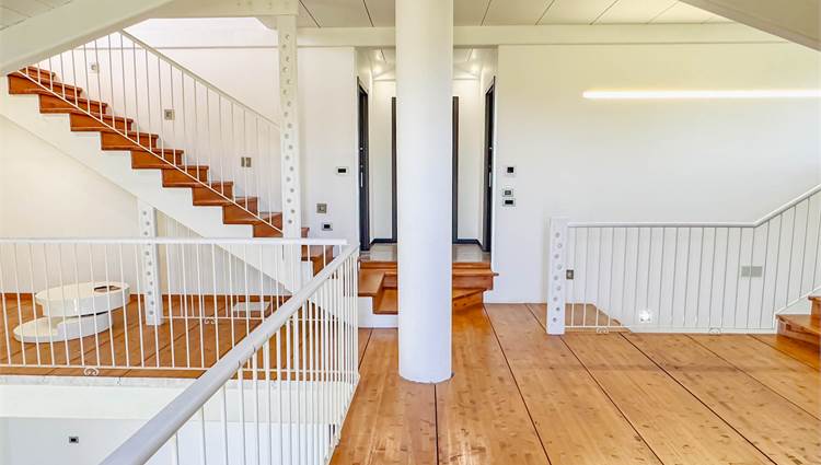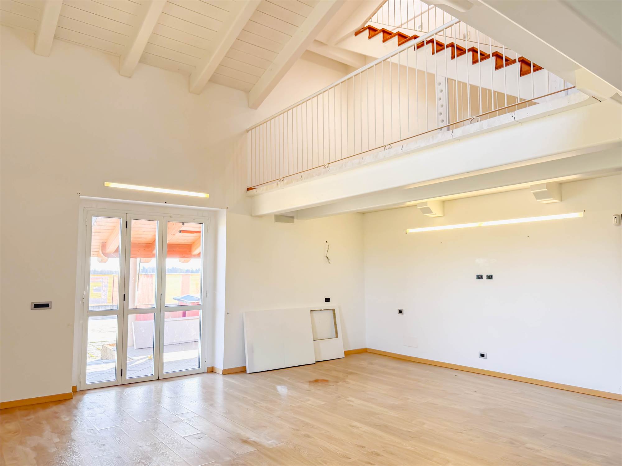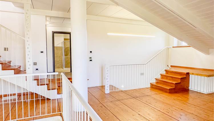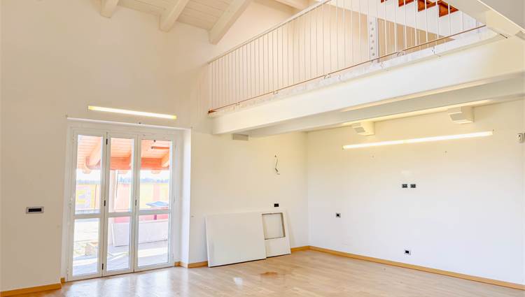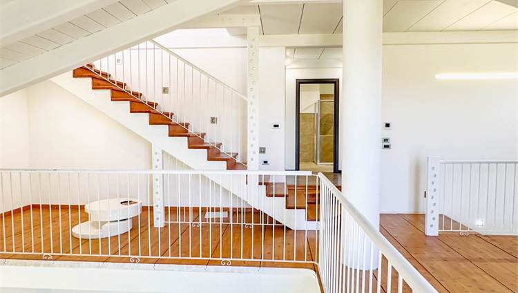 L’ingresso accompagna in un ampio salone con cucina a vista, uno spazio pensato per essere vissuto e condiviso, dove la luce naturale valorizza ogni angolo. Sempre al piano terra troviamo una camera matrimoniale, un bagno e una comoda lavanderia. Salendo al piano superiore, il soppalco affacciato sulla zona giorno crea un impatto scenografico unico e conduce alle altre due camere matrimoniali e al secondo bagno. Un’ulteriore scala interna porta alla mansarda, uno spazio versatile e personalizzabile in base alle proprie esigenze.