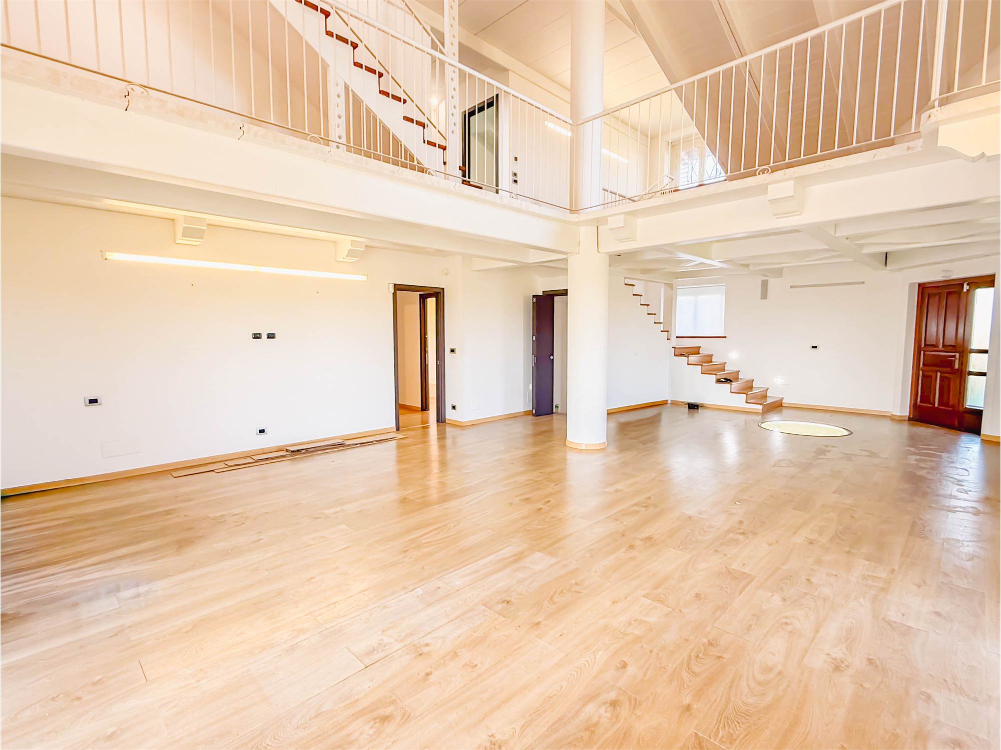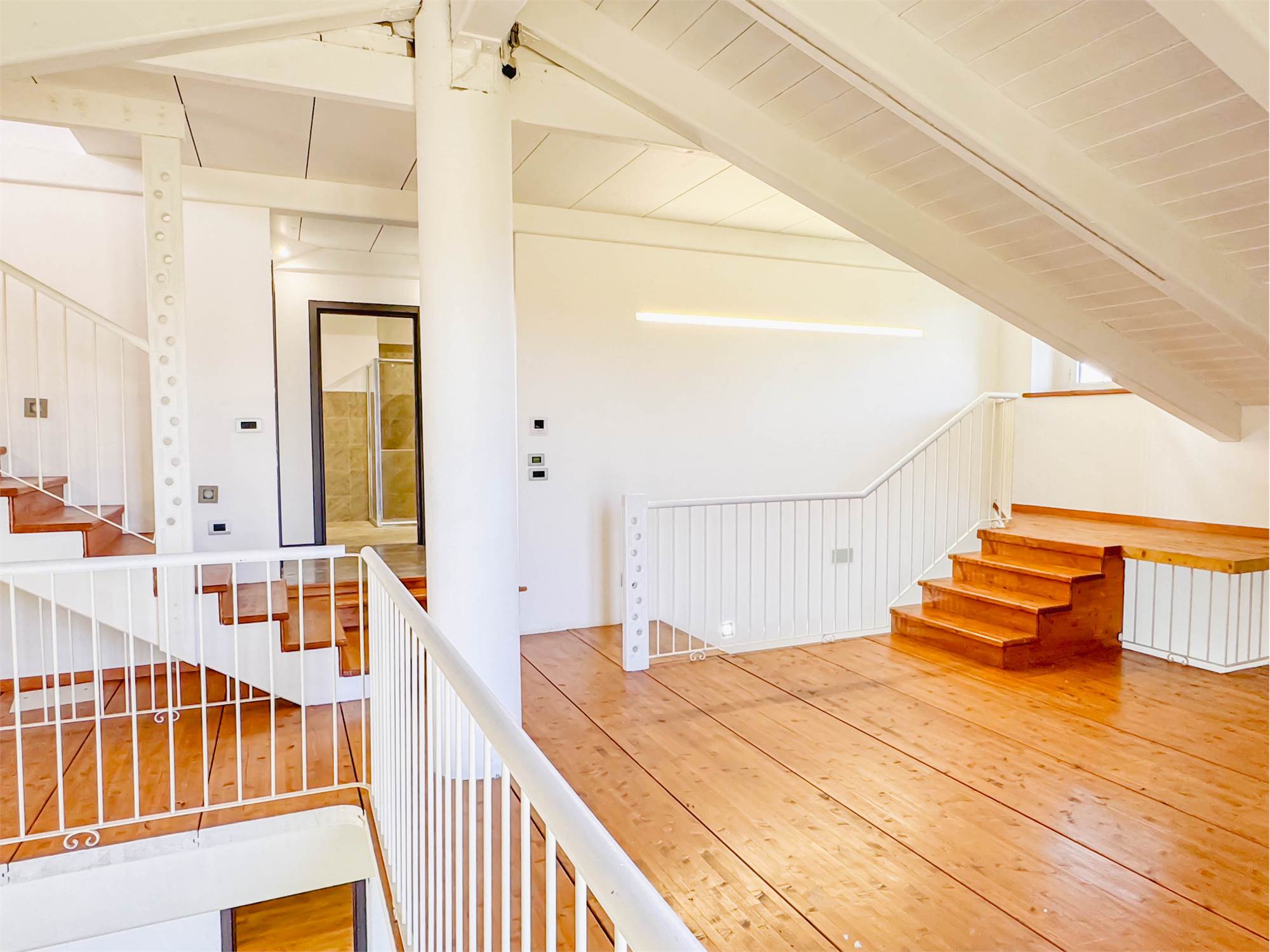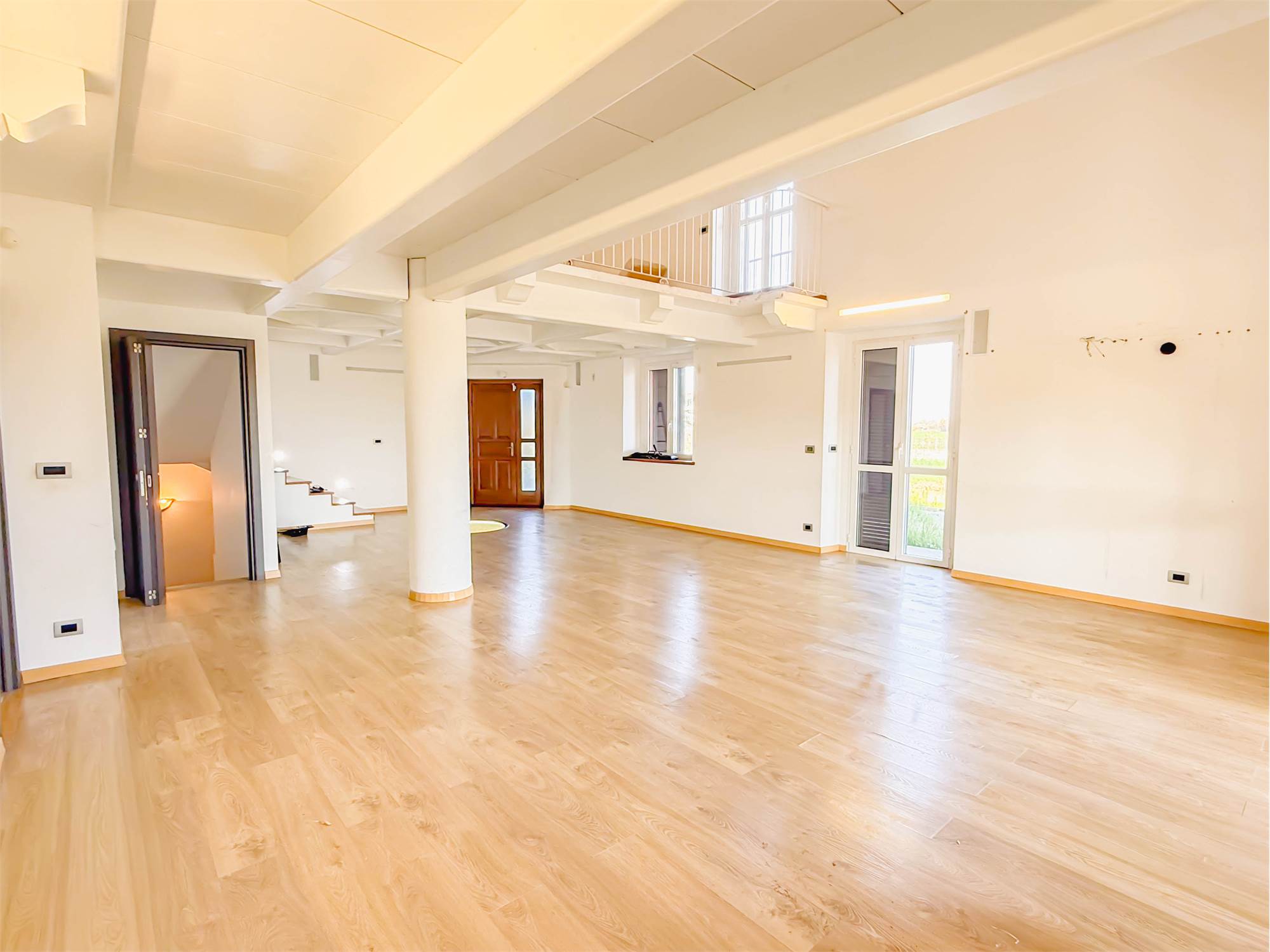 L’ingresso accompagna in un ampio salone con cucina a vista, uno spazio pensato per essere vissuto e condiviso, dove la luce naturale valorizza ogni angolo. Sempre al piano terra troviamo una camera matrimoniale, un bagno e una comoda lavanderia. Salendo al piano superiore, il soppalco affacciato sulla zona giorno crea un impatto scenografico unico e conduce alle altre due camere matrimoniali e al secondo bagno. Un’ulteriore scala interna porta alla mansarda, uno spazio versatile e personalizzabile in base alle proprie esigenze.