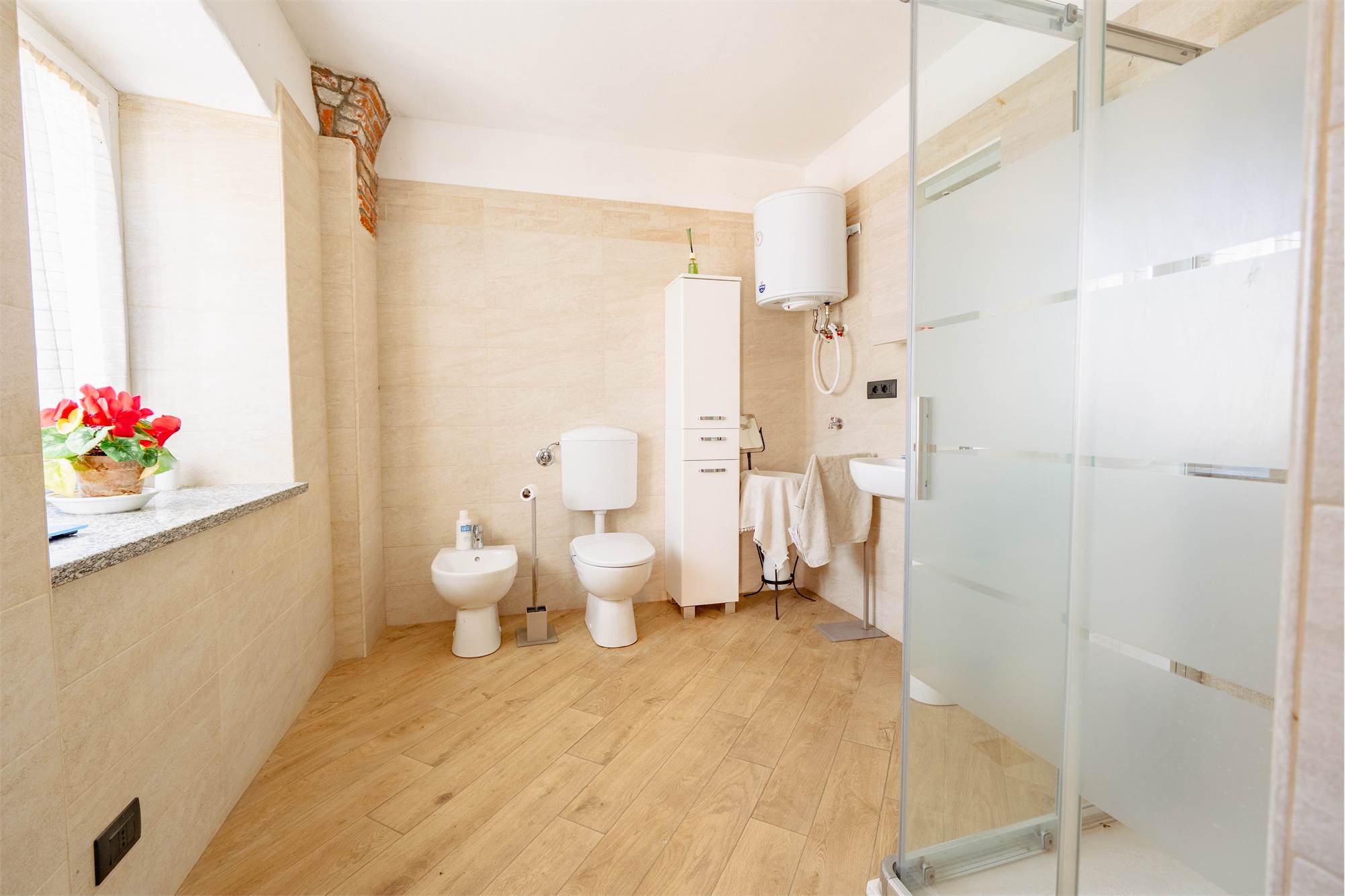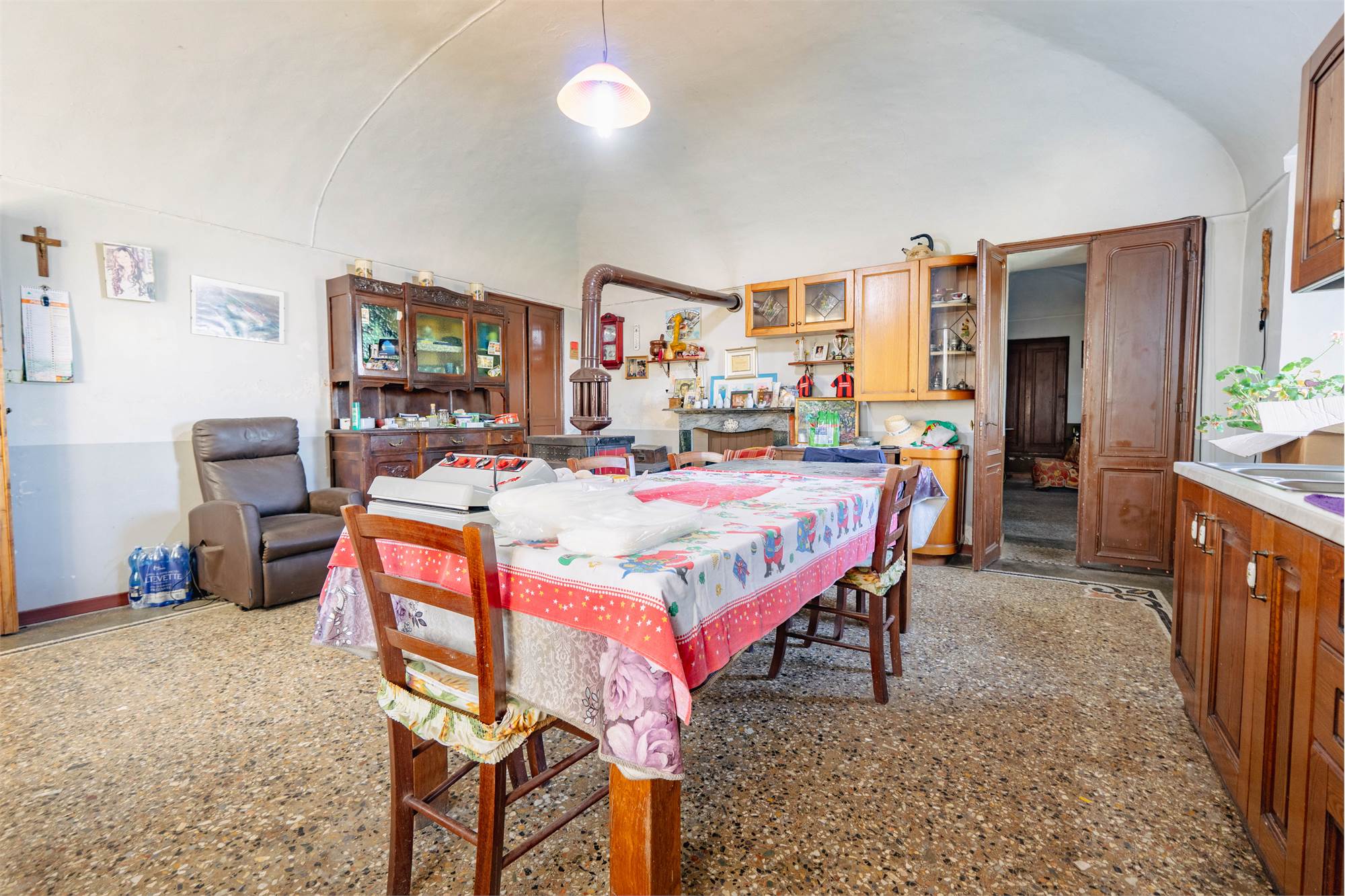 Attualmente il casale è composto da un accogliente soggiorno, una cucina abitabile, due camere da letto e due bagni, oltre ad ulteriori sei vani che possono essere trasformati in ulteriori camere, studi o ambienti dedicati alle proprie esigenze, rendendolo perfetto sia come abitazione principale che come struttura ricettiva o soluzione plurifamiliare. Il riscaldamento è garantito da una stufa a legna, mentre a circa 100 metri dalla proprietà è presente il collegamento al gas metano, offrendo la possibilità di un comodo allacciamento e di un eventuale ammodernamento degli impianti.